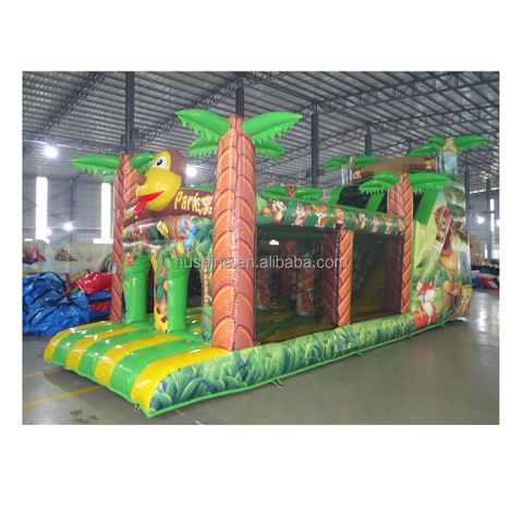 Comercial niños selva animal tema inflable carrera de obstáculos divertido juego inflable castillo hinchable con tobogán