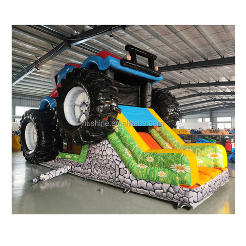 Castillo hinchable inflable comercial, combinación de carrera de obstáculos de camión monstruo inflable con toboganes, casa de rebote de camión monstruo