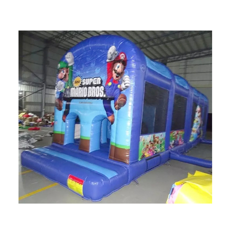 Castillo hinchable inflable comercial de 12m de largo con carrera de obstáculos inflable deslizante a la venta