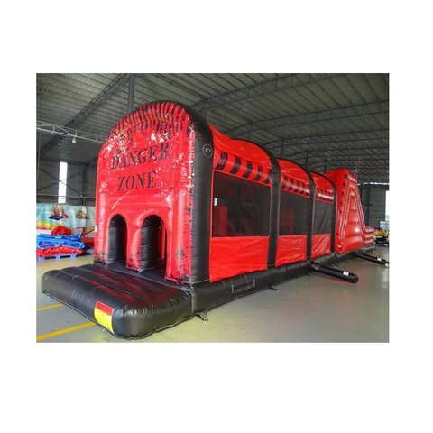 Castillo hinchable inflable comercial con tobogán, tema de zona de peligro gigante roja, carrera de obstáculos inflable a la venta