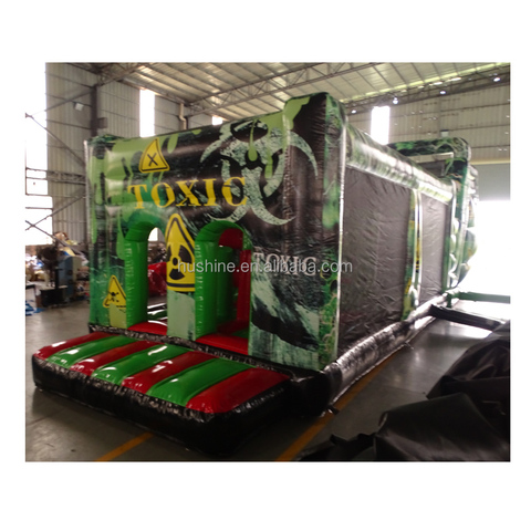 Combo de carrera de obstáculos de castillo hinchable inflable comercial con toboganes Túnel de obstáculos inflable de tema Tóxico para niños y adultos